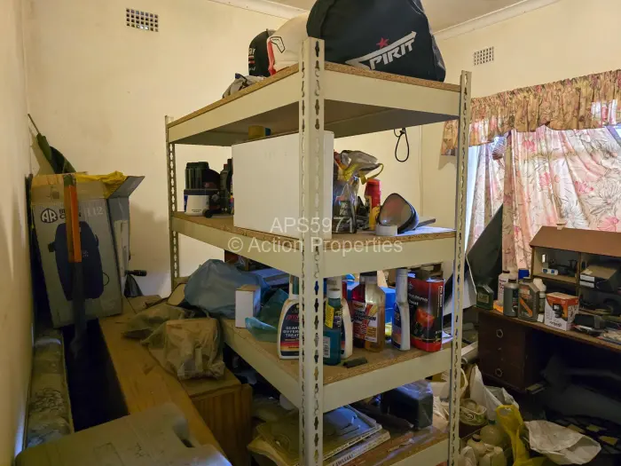 This house boasts five bedrooms, four of which have built in cupboards. There are two bathrooms, one consists of a shower and toilet, and the other consists of a bath, shower and sink. There is also a linen cupboard and a small storeroom.
