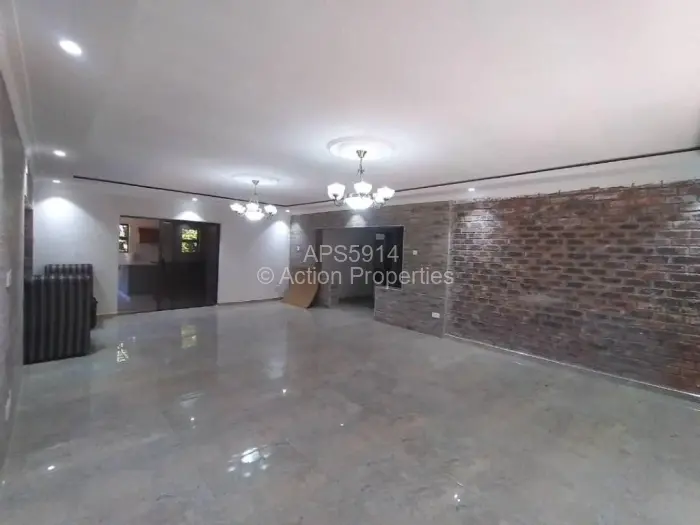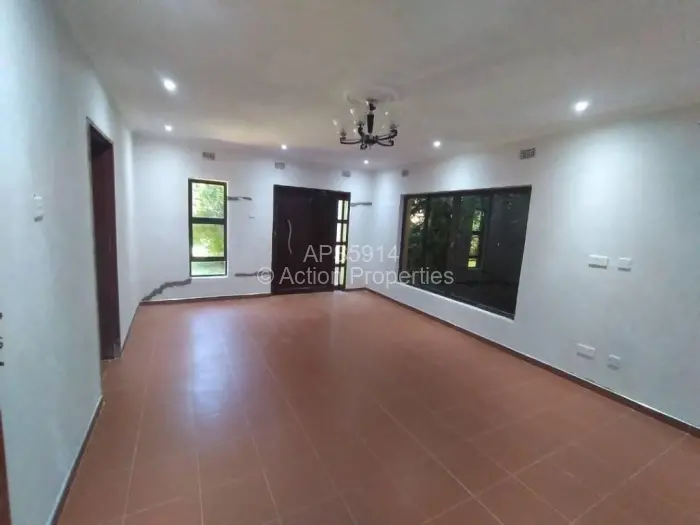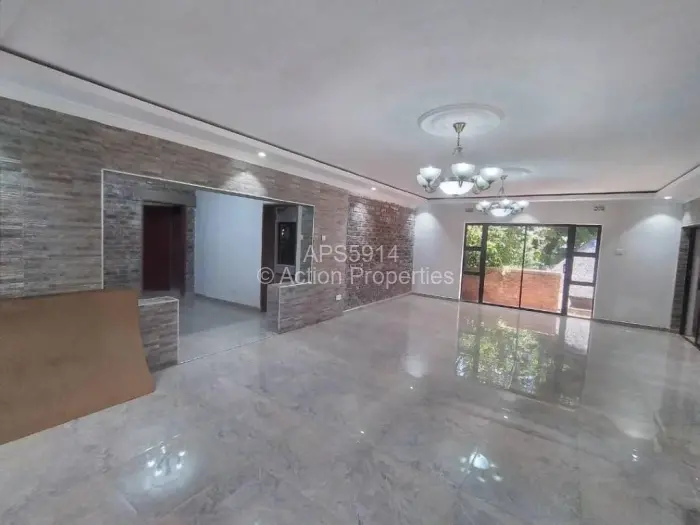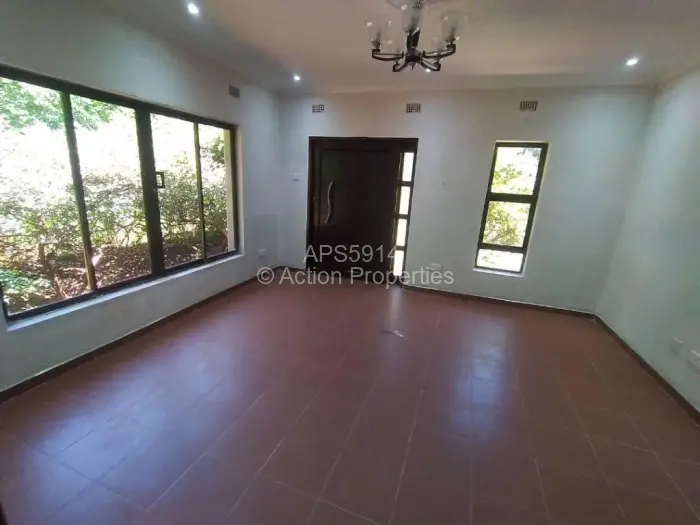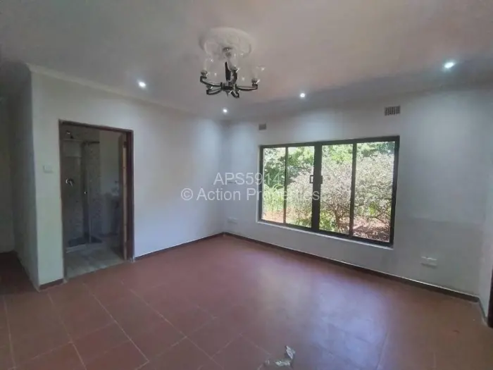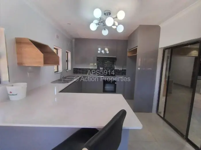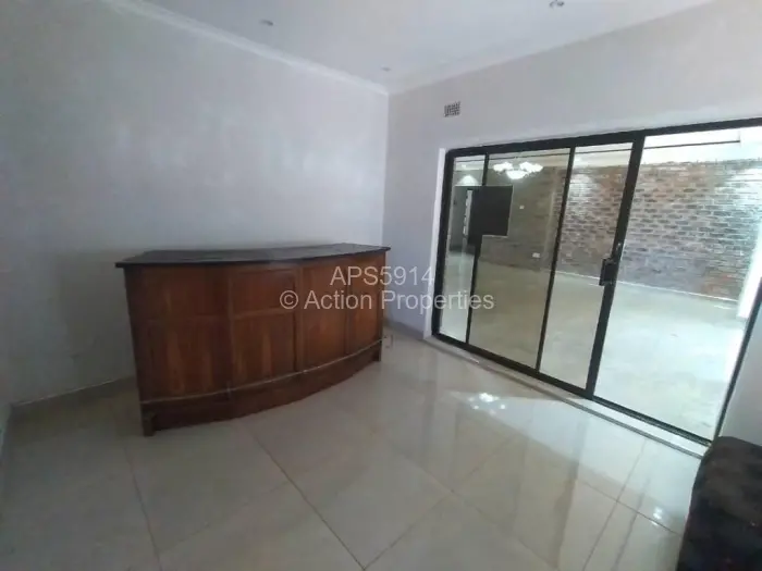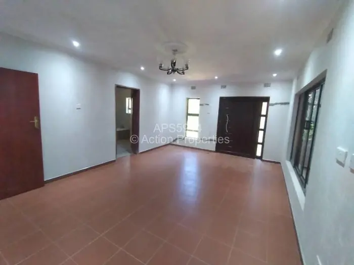 Brightly lit lounge with dining area. Study / office also. Property is serviced with a borehole and 5000 litre water tank. Solar back up.