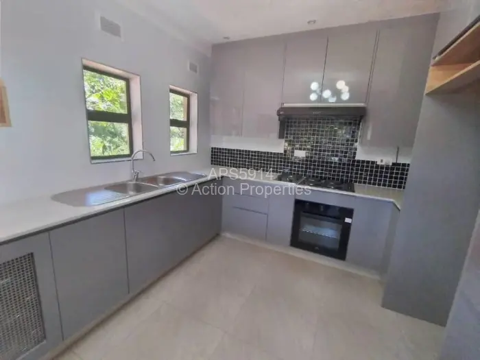 Three tastefully tiled bedrooms with three elegantly finished bathrooms. Spacious fitted kitchen with cooking hob and oven, double sink.