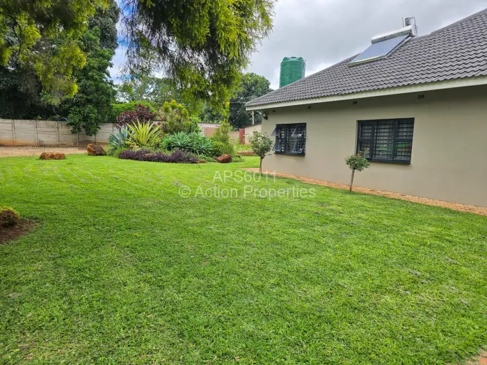 Outside there is a lovely veranda area which overlooks the swimming pool. There is ample garden space! The property has a double lockup garage and double staff quarters, as well as a separate storeroom. For added convenience there is a 5kva solar system and a borehole.