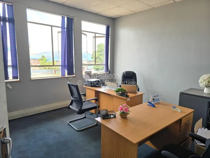The first floor of the office block has a reception area, five offices, strongroom, kitchen and two blocks of toilets.